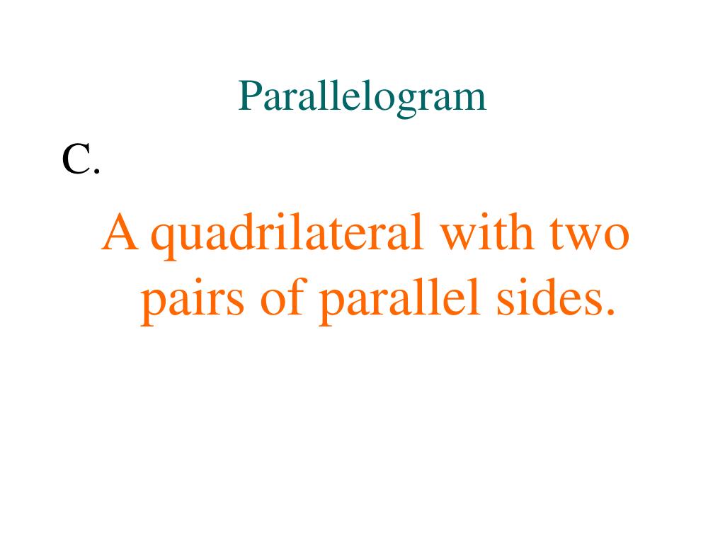 Parallelogram C. A quadrilateral with two pairs of parallel sides.