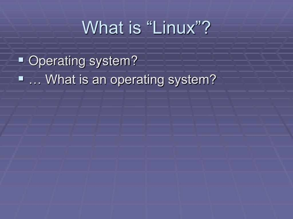What is Linux? • There are also two usages of the term “Linux”, corresponding roughly to the narrow/broad usage of the term “Operating System”. • The narrow definition: simply the kernel • The broader definition: includes basically everything available in the system