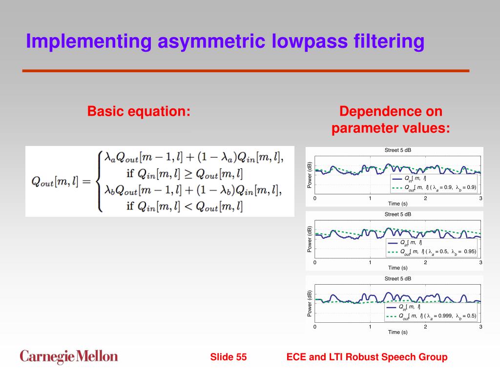 Implementing asymmetric lowpass filtering Basic equation: Dependence on parameter values: