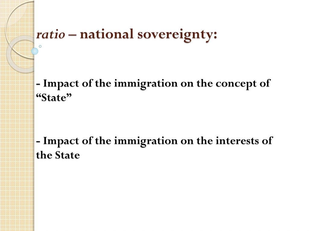 ratio – nationalsovereignty:- Impact of the immigration on the concept of “State”- Impact of the immigration on the interests of the State