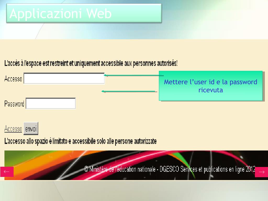 Applicazioni Web Mettere l’user id e la password ricevuta