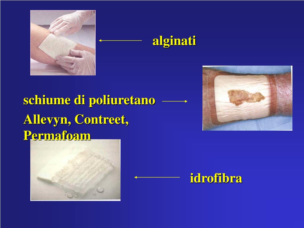 alginati schiume di poliuretano Allevyn, Contreet, Permafoam idrofibra