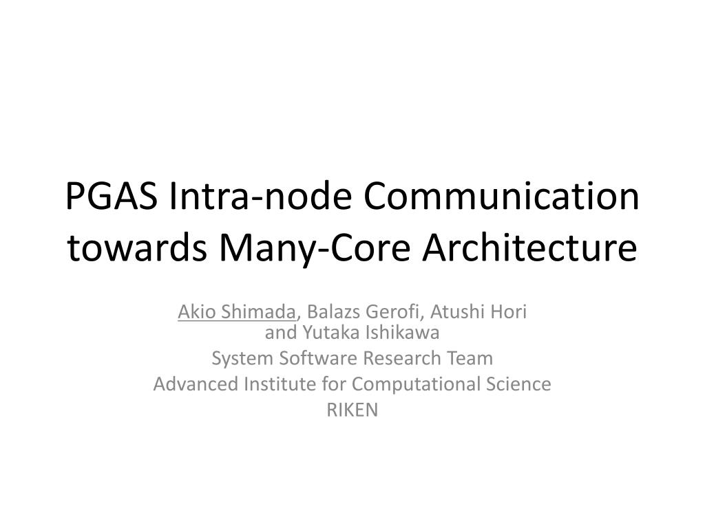 PGAS Intra-node Communication towards Many-Core Architecture Akio Shimada, BalazsGerofi, Atushi Hori and Yutaka Ishikawa System Software Research Team Advanced Institute for Computational Science RIKEN