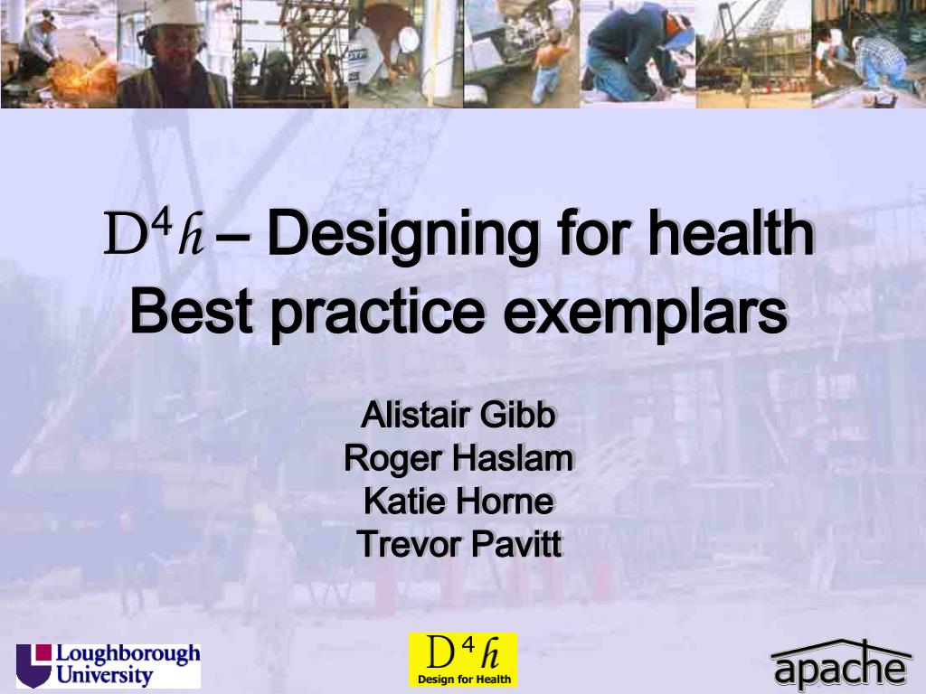 D4h – Designing for health Best practice exemplars Alistair Gibb Roger Haslam Katie Horne Trevor Pavitt