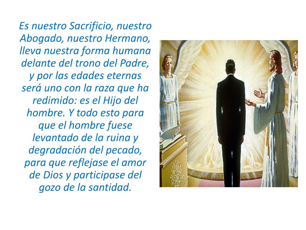Es nuestro Sacrificio, nuestro Abogado, nuestro Hermano, lleva nuestra forma humana delante del trono del Padre, y por las edades eternas será uno con la raza que ha redimido: es el Hijo del hombre. Y todo esto para que el hombre fuese levantado de la ruina y degradación del pecado, para que reflejase el amor de Dios y participase del gozo de la santidad.