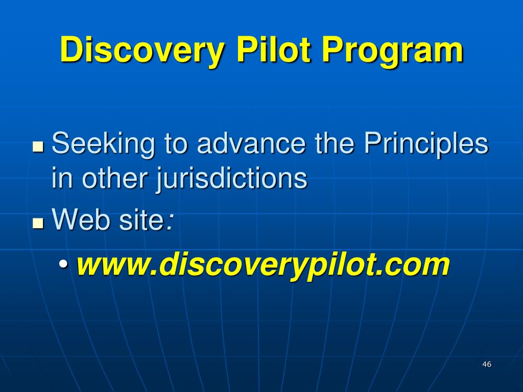 Discovery Pilot Program • Seeking to advance the Principles in other jurisdictions • Web site: • www.discoverypilot.com