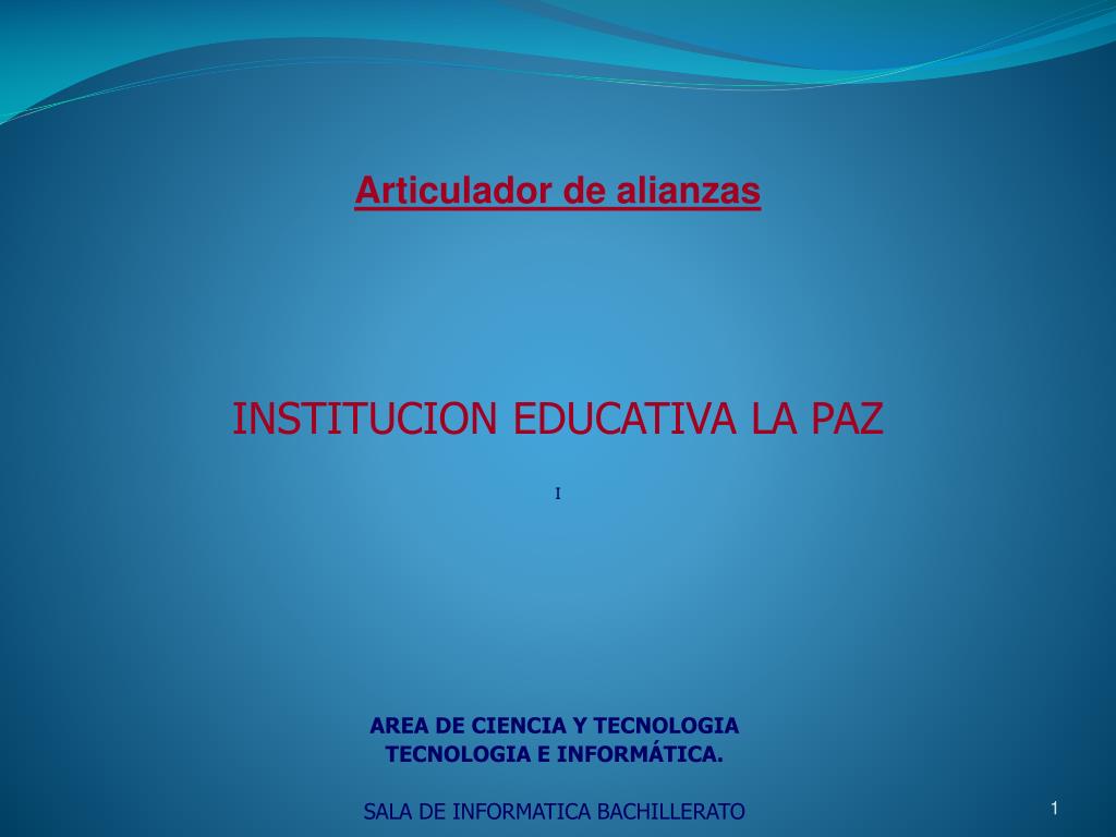 Articulador de alianzas INSTITUCION EDUCATIVA LA PAZ I AREA DE CIENCIA Y TECNOLOGIA TECNOLOGIA E INFORMÁTICA. SALA DE INFORMATICA BACHILLERATO