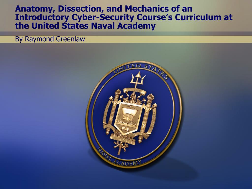 Anatomy, Dissection, and Mechanics of an Introductory Cyber-Security Course’s Curriculum at the United States Naval Academy . By Raymond Greenlaw. Co-authors.