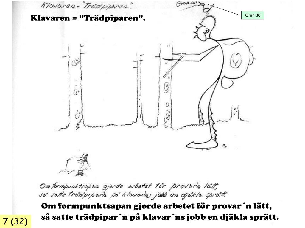 Klavaren = ”Trädpiparen”. Gran 30 Om formpunktsapan gjorde arbetet för provar´n lätt, så satte trädpipar´n på klavar´ns jobb en djäkla sprätt. 7 (32)