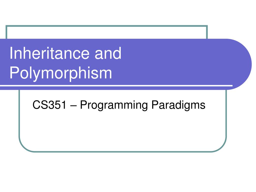 Inheritance and Polymorphism CS351 – Programming Paradigms