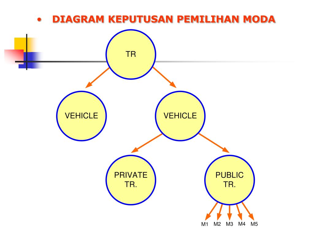 4. PEMILIHAN MODA (MODA CHOICE) • APABILA JUMLAH PERJALANAN TOTAL DARI MASING-MASING TEMPAT ASAL KE SETIAP TEMPAT TUJUAN TELAH DIPERKIRAKAN UNTUK SETIAP MAKSUD PERJALANAN, LANGKAH SELANJUTNYA ADALAH MEMPERKIRAKAN JUMLAH PENUMPANG YANG AKAN MENGGUNAKAN SETIAP MODA YANG TERSEDIA • PEMILIHAN MODA DIHIPOTESISKAN AKAN TERGANTUNG DARI KARAKTERISTIK MODA YANG MENCERMINKAN BIAYA YANG DISAMARATAKAN DALAM MENGGUNAKAN MODA TERSEBUT.
