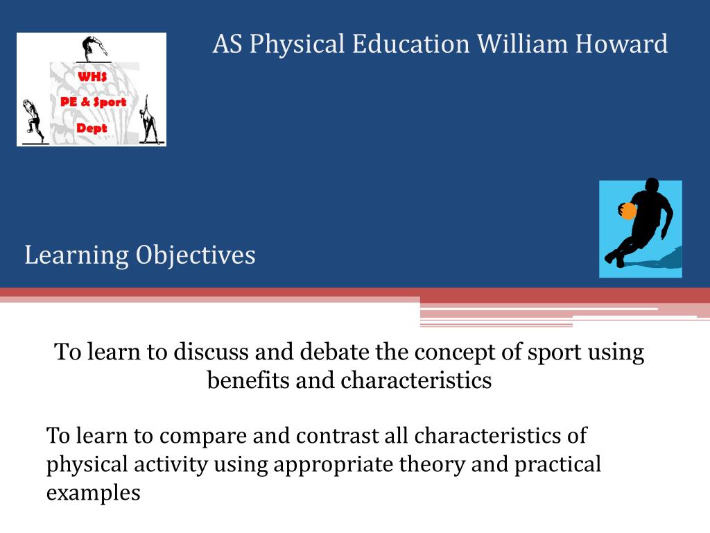 AS Physical Education William Howard Learning Objectives To learn to discuss and debate the concept of sport using benefits and characteristics To learn to compare and contrast all characteristics of physical activity using appropriate theory and practical examples