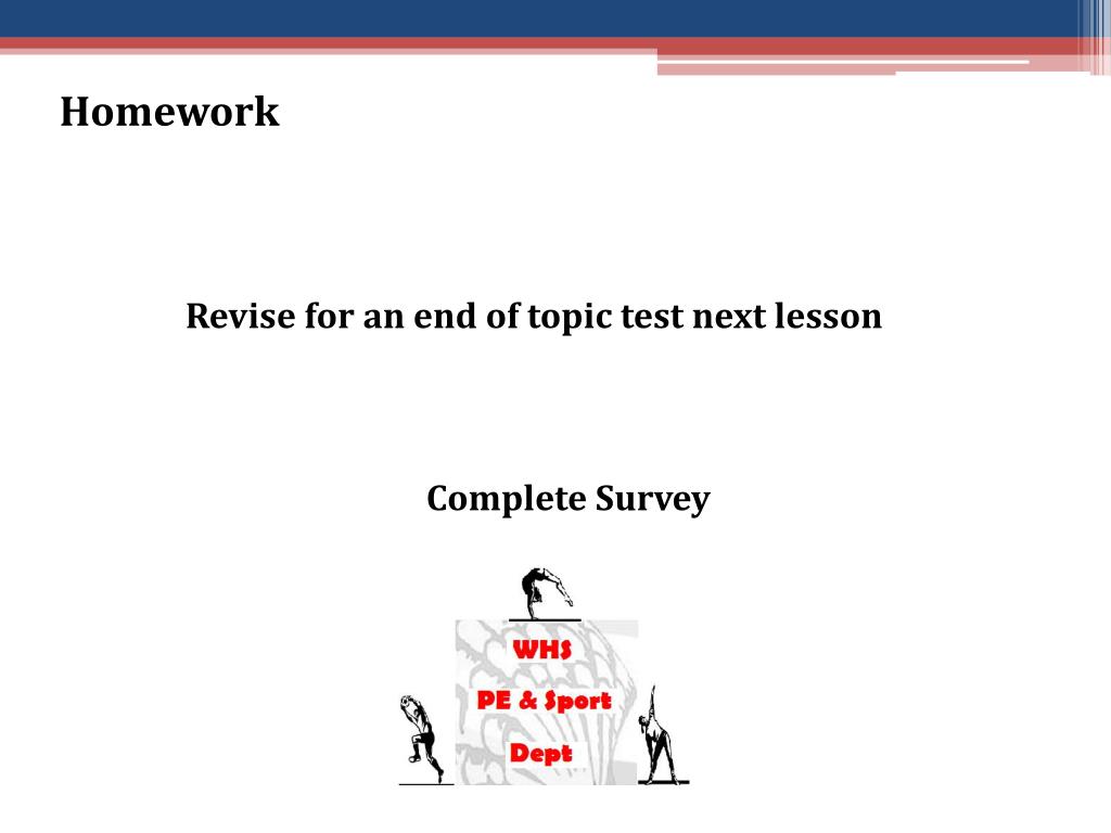 Homework Revise for an end of topic test next lesson Complete Survey