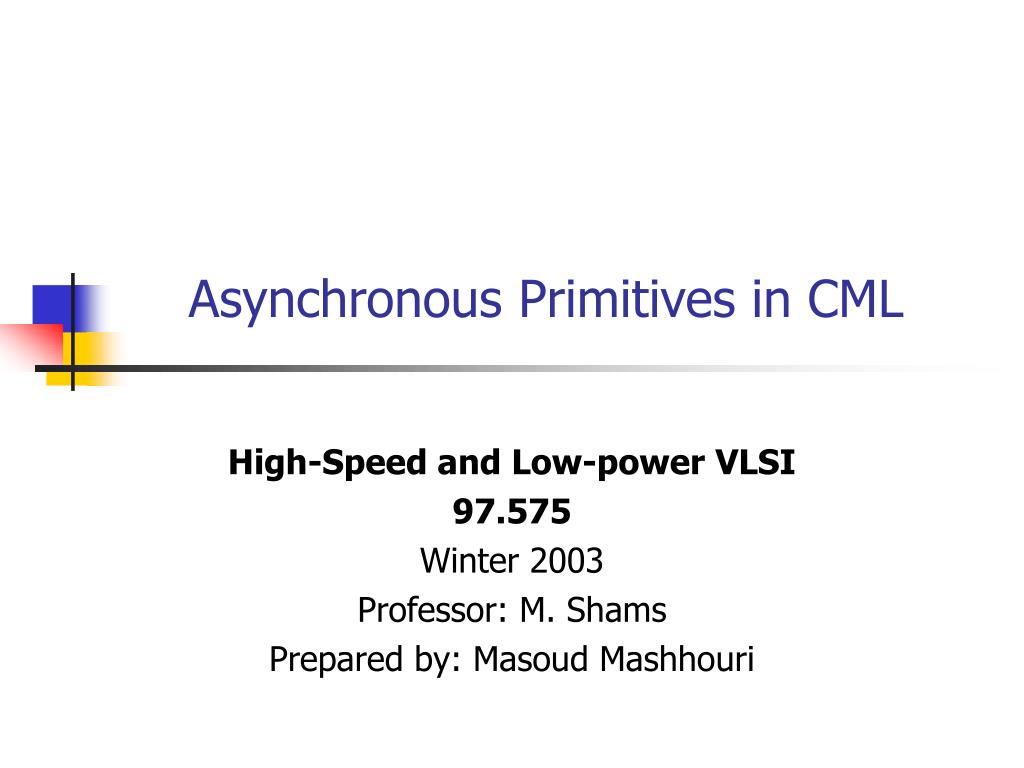 Asynchronous Primitives in CML. High-Speed and Low-power VLSI 97.575 Winter 2003 Professor: M. Shams Prepared by: Masoud Mashhouri. Introduction. In this presentation, CML gates and their advantages and disadvantages are discussed.