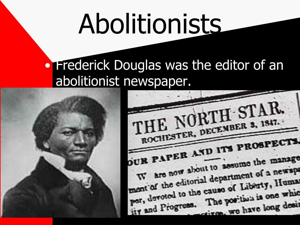Abolitionists • Frederick Douglas was the editor of an abolitionist newspaper.