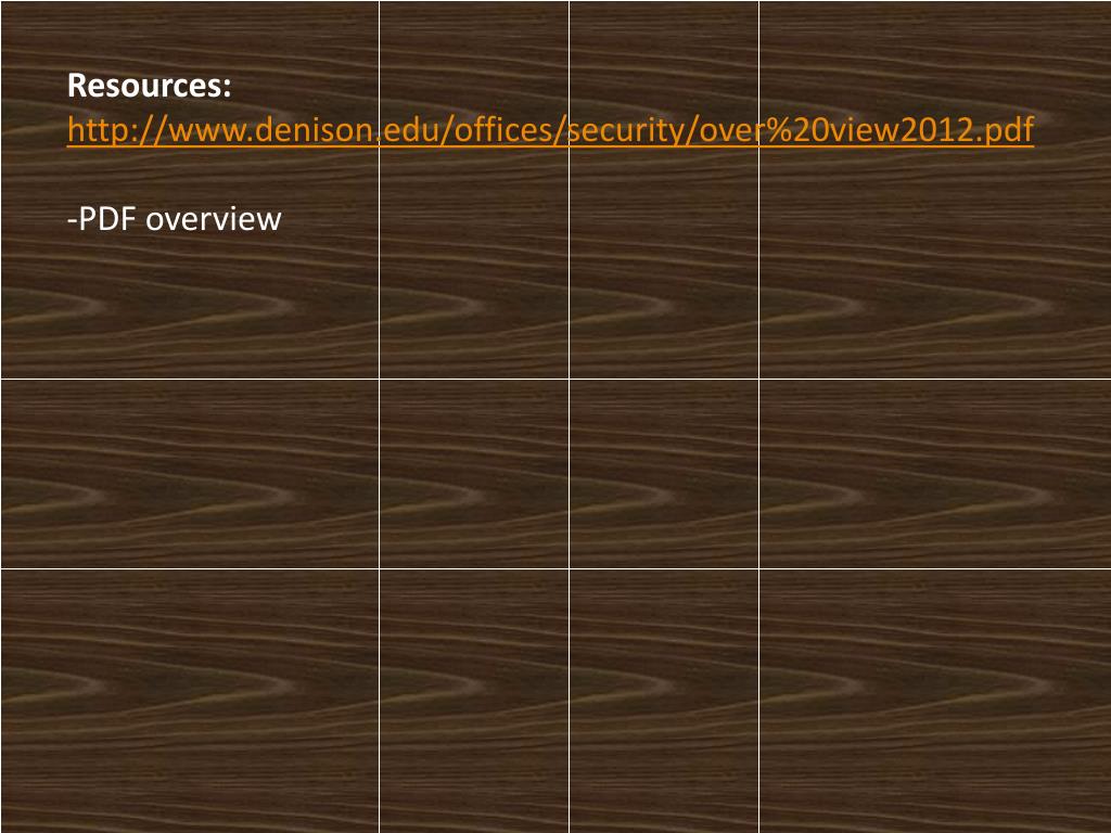 Resources: http://www.denison.edu/offices/security/over%20view2012.pdf-PDF overview
