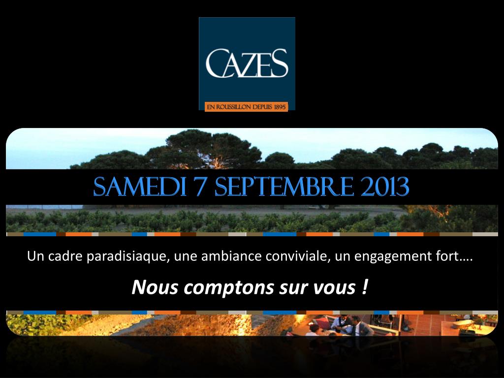 Samedi 7 septembre 2013 Un cadre paradisiaque, une ambiance conviviale, un engagement fort…. Nous comptons sur vous !