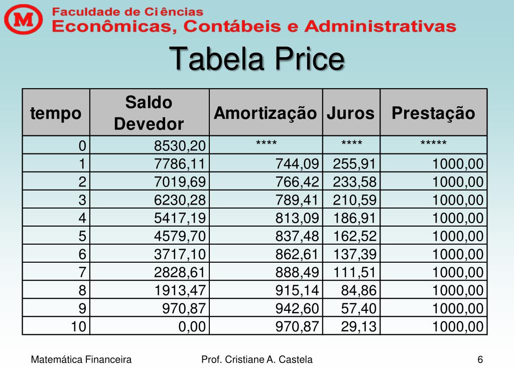 Tabela Price Prof. Cristiane A. Castela