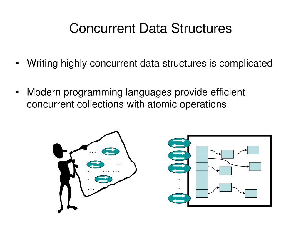 Concurrent Data Structures Writing highly concurrent data structures is complicated Modern programming languages provide efficient concurrent collections with atomic operations … … … … … … .. … …