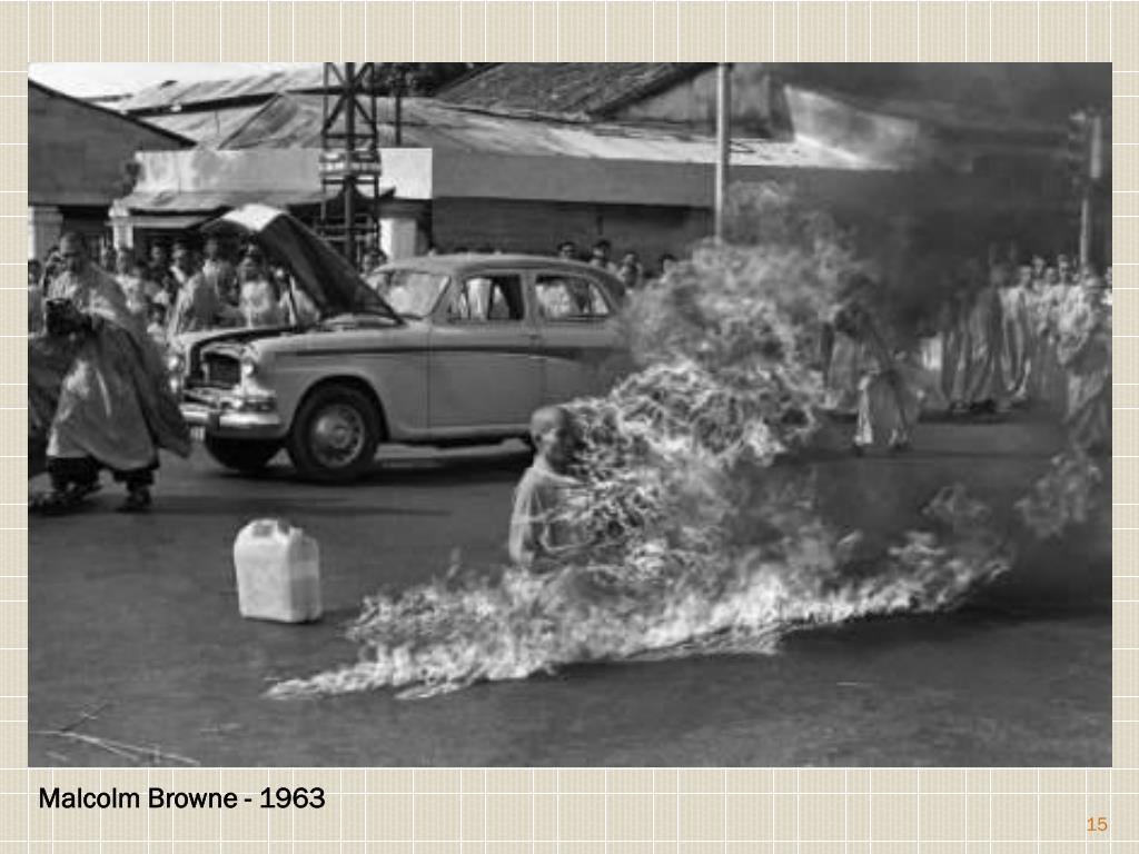 ThichQuangDuc, nascido em 1897, foi um monge budista vietnamita que se sacrificou até a morte numa rua movimentada de Saigon em 11 de Junho de 1963. O seu acto foi repetido por outros monges. Enquanto o seu corpo ardia sob as chamas, o monge manteve-se completamente imóvel. Não gritou, nem sequer fez um pequeno ruído. ThichQuangDuc protestava contra a maneira que a sociedade oprimia a religião Budista em seu país. Após a sua morte, o seu corpo foi cremado conforme a tradição budista. Durante a cremação o seu coração manteve-se intacto, pelo que foi considerado como quase santo e o seu coração foi transladado aos cuidados do Banco de Reserva do Vietname como relíquia. Protesto silencioso