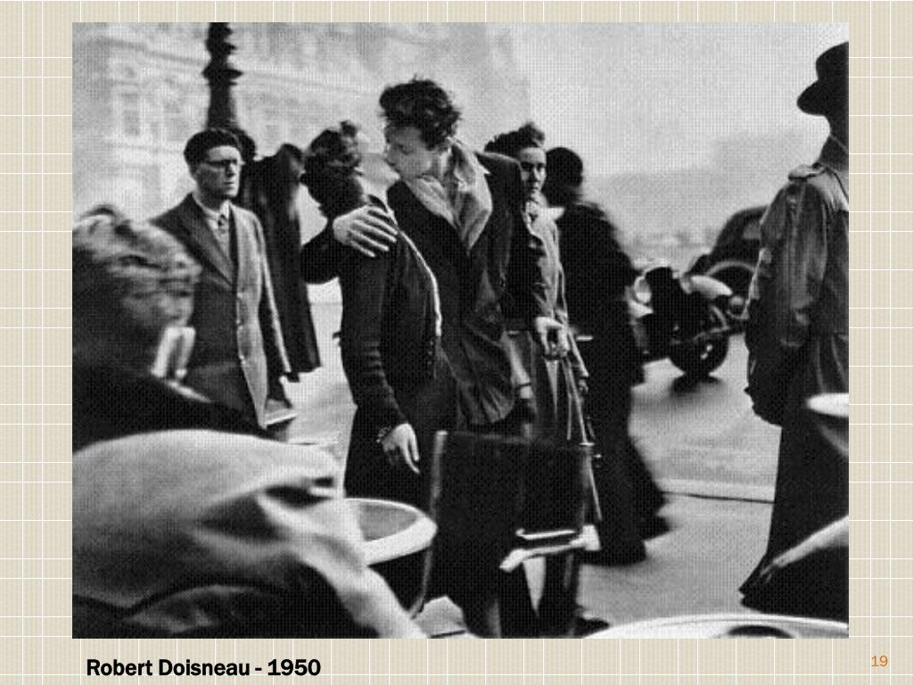 Esta fotografia data de 1950, é considerada como a mais vendida da história. Isto devido a intrigante história com a que foi descrita durante muitos anos: segundo contava-se, esta foto foi tirada por RobertDoisneau enquanto encontrava-se sentado tomando um café. O fotógrafo accionava regularmente a sua câmara entre as pessoas que passavam e captou esta imagem de amantes beijando-se com paixão enquanto caminhavam no meio da multidão.Esta foi a história que se conheceu durante muitos anos até 1992, quando dois impostores se fizeram passar pelo casal protagonista desta foto. No entanto o Sr. Doisneau indignado pela falsa declaração, revelaria a história original declarando assim aquela lenda: a fotografia não tinha sido tirada assim do nada, senão que se tratava de dois transeuntes que pediu que pousassem, lhes enviando uma cópia da foto como agradecimento.55 anos depois FrançoiseBornet (a mulher do beijo) reclamou os direitos de imagem das cópias desta foto e recebeu 200 mil dólares. O beijo do hotel de ville