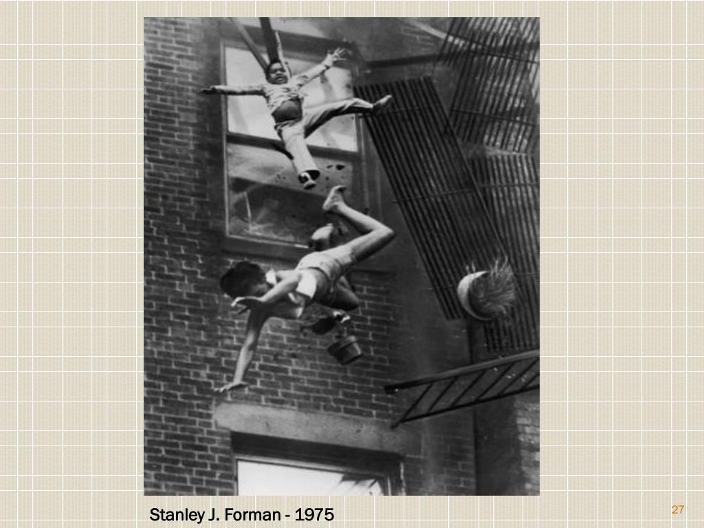 Em 22 de Julho de 1975, Stanley J. Forman tirou a fotografia de uma jovem mulher, Diana Bryant, e uma menina muito jovem, Tiare Jones, quando caiam desamparadas. Diana Bryant foi declarada morta no local. A menina sobreviveu. Apesar de um esforço heróico, o bombeiro que tentou agarrá-las foram só segundos para conseguir salvar a vida de ambas.StanleyForman ganhou um Prémio Pulitzer. Mas, mais importante, o seu trabalho fez com que os bombeiros de Boston e outros estados fizessem códigos de segurança de incêndios. Fogo em MarlboroughStreet