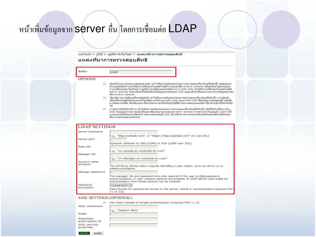 หน้าเพิ่มข้อมูลจาก server อื่น โดยการเชื่อมต่อ LDAP