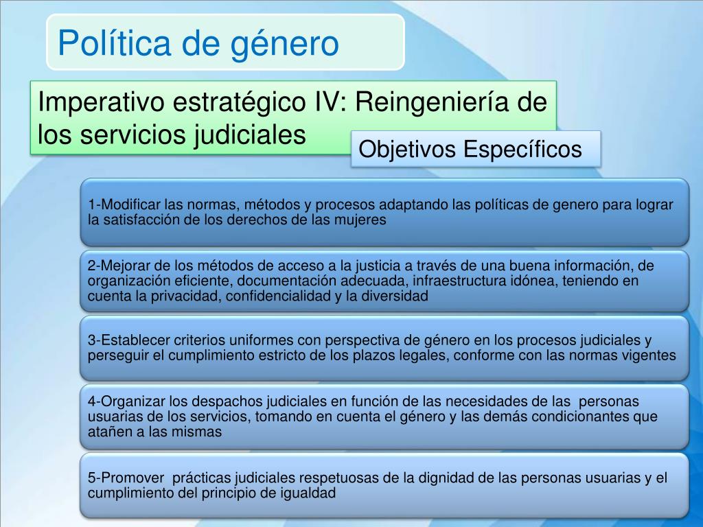 Política de género Imperativo estratégico IV: Reingeniería de los servicios judiciales