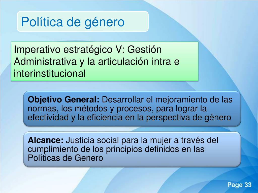 Política de género Definición de Imperativos estratégicos