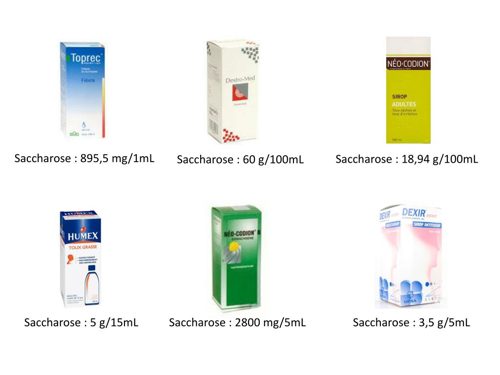 Teneur en sucre de différents sirops. SUITE. Saccharose : 895,5 mg/1mL. Saccharose : 18,94 g/100mL. Saccharose : 60 g/100mL. Saccharose : 5 g/15mL. Saccharose : 2800 mg/5mL. Saccharose : 3,5 g/5mL. SOLUTION KETOPROFENE : 1 MG/ML (classe chimique ARYLCARBOXYLIQUE)