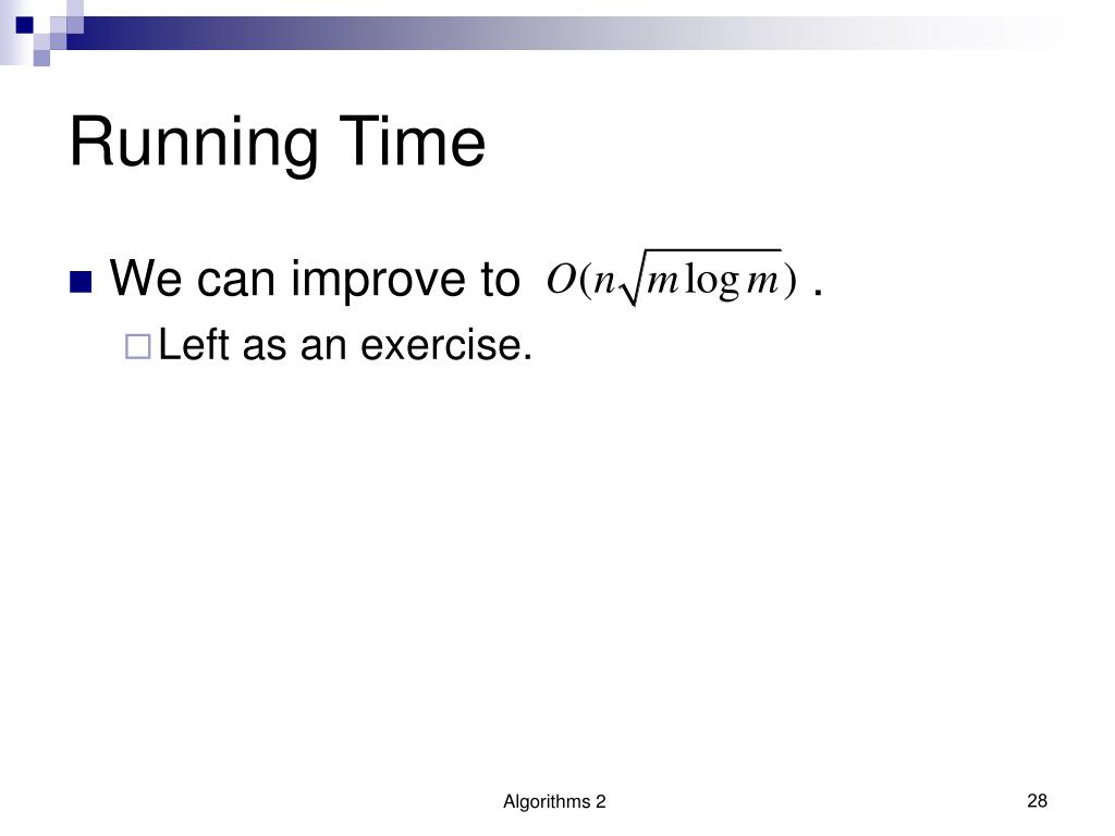 Running Time • We can improve to . • Left as an exercise. Algorithms 2