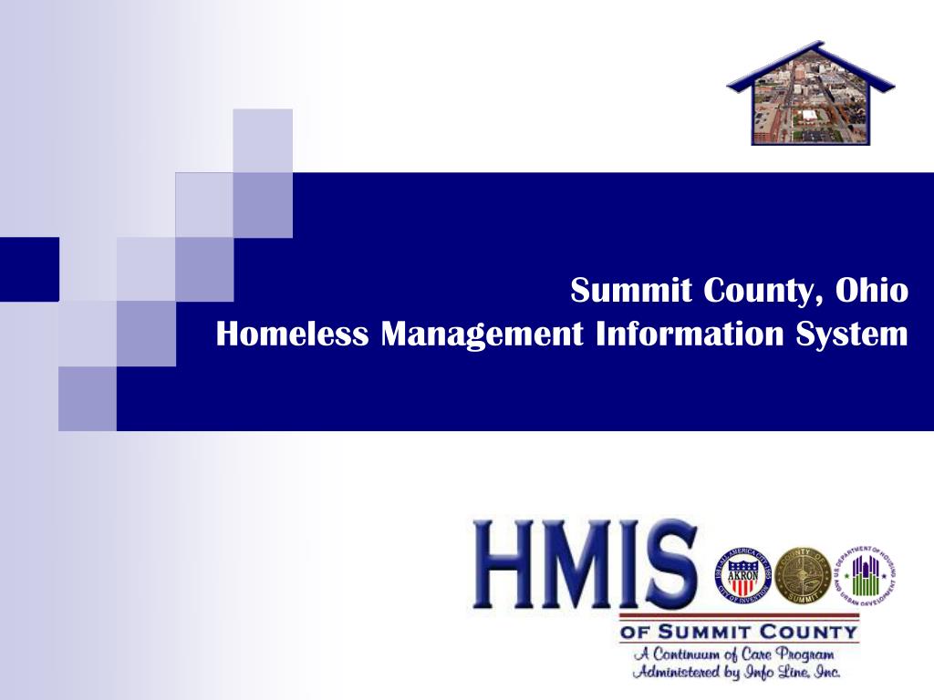 Summit County, Ohio Homeless Management Information System. What is HMIS?. HMIS (Homeless Management Information System) Community-wide Homeless Data Collection Agency/Client confidentiality is secure More accurate aggregate data evaluation in our community.