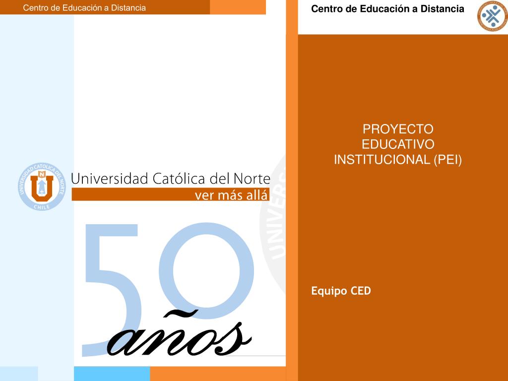 Centro de Educación a Distancia. El proyecto educativo institucional (PEI). PROYECTO EDUCATIVO INSTITUCIONAL (PEI). Equipo CED. Esquema presentación. Proyecto Educativo Institucional. Instrumento de planificación de estrategia situacional. Concepciones.