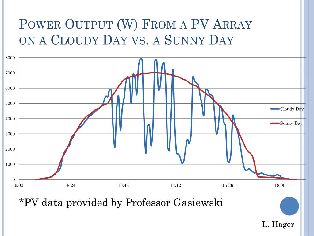 Power Output (W) From a PV Array on a Cloudy Day vs. a Sunny Day *PV data provided by Professor Gasiewski L. Hager