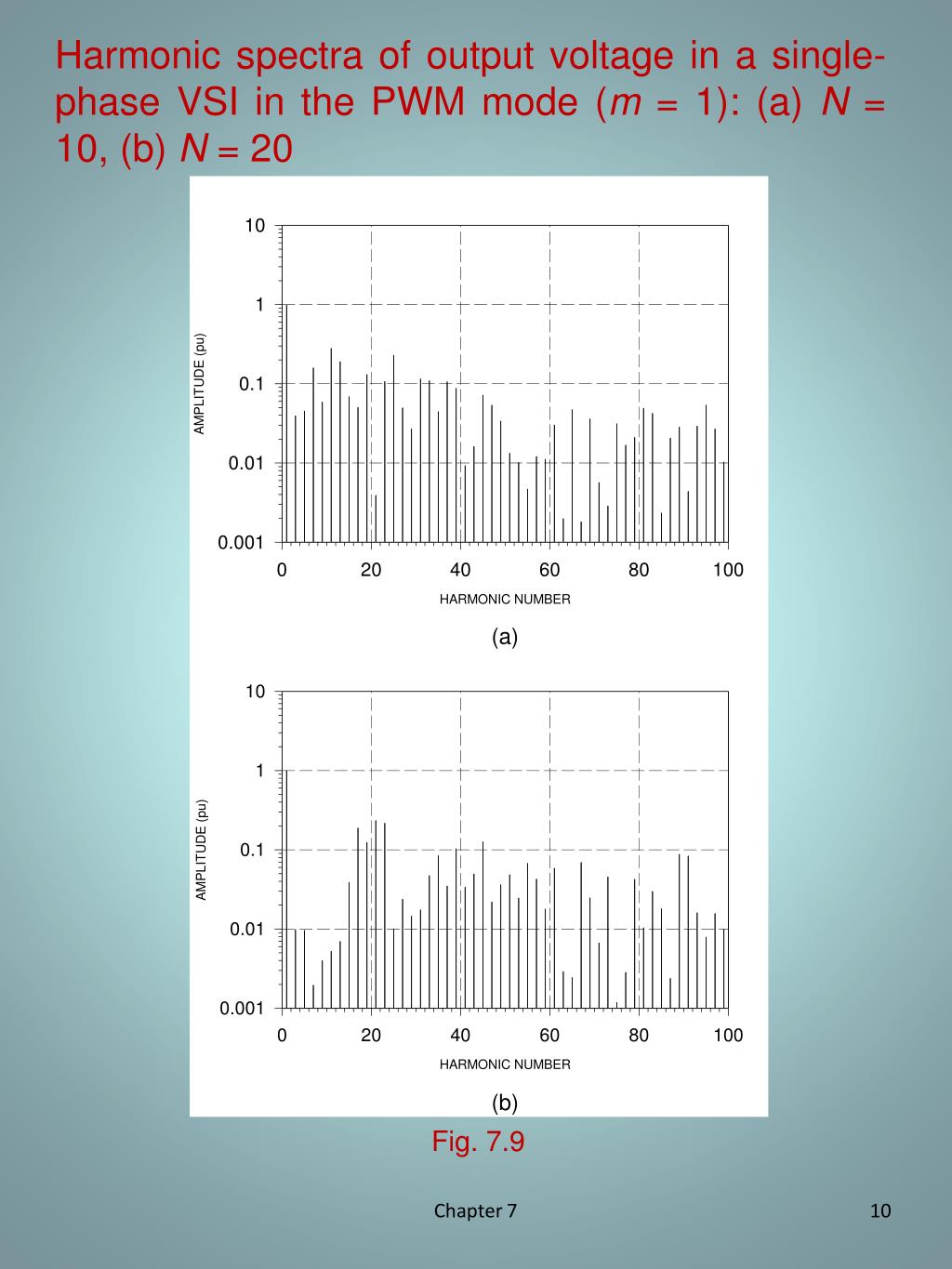 Harmonic spectra of output voltage in a single-phase VSI in the PWM mode (m = 1): (a) N = 10, (b) N = 20 Fig. 7.9 Chapter 7