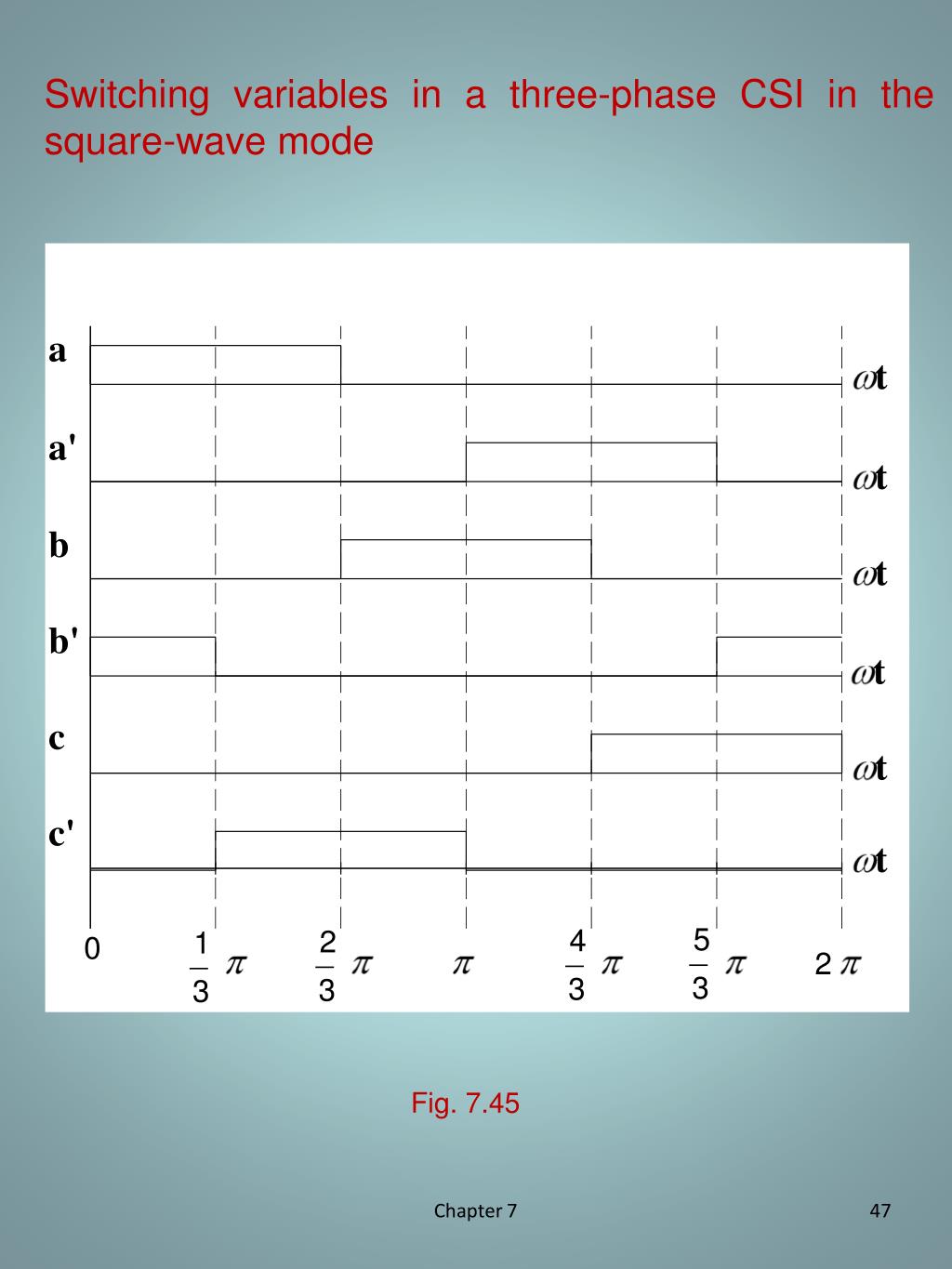 Switching variables in a three-phase CSI in the square-wave mode Fig. 7.45 Chapter 7