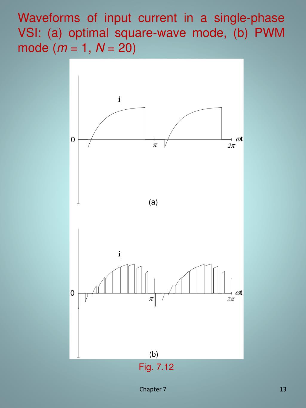Waveforms of input current in a single-phase VSI: (a) optimal square-wave mode, (b) PWM mode (m = 1, N = 20) Fig. 7.12 Chapter 7