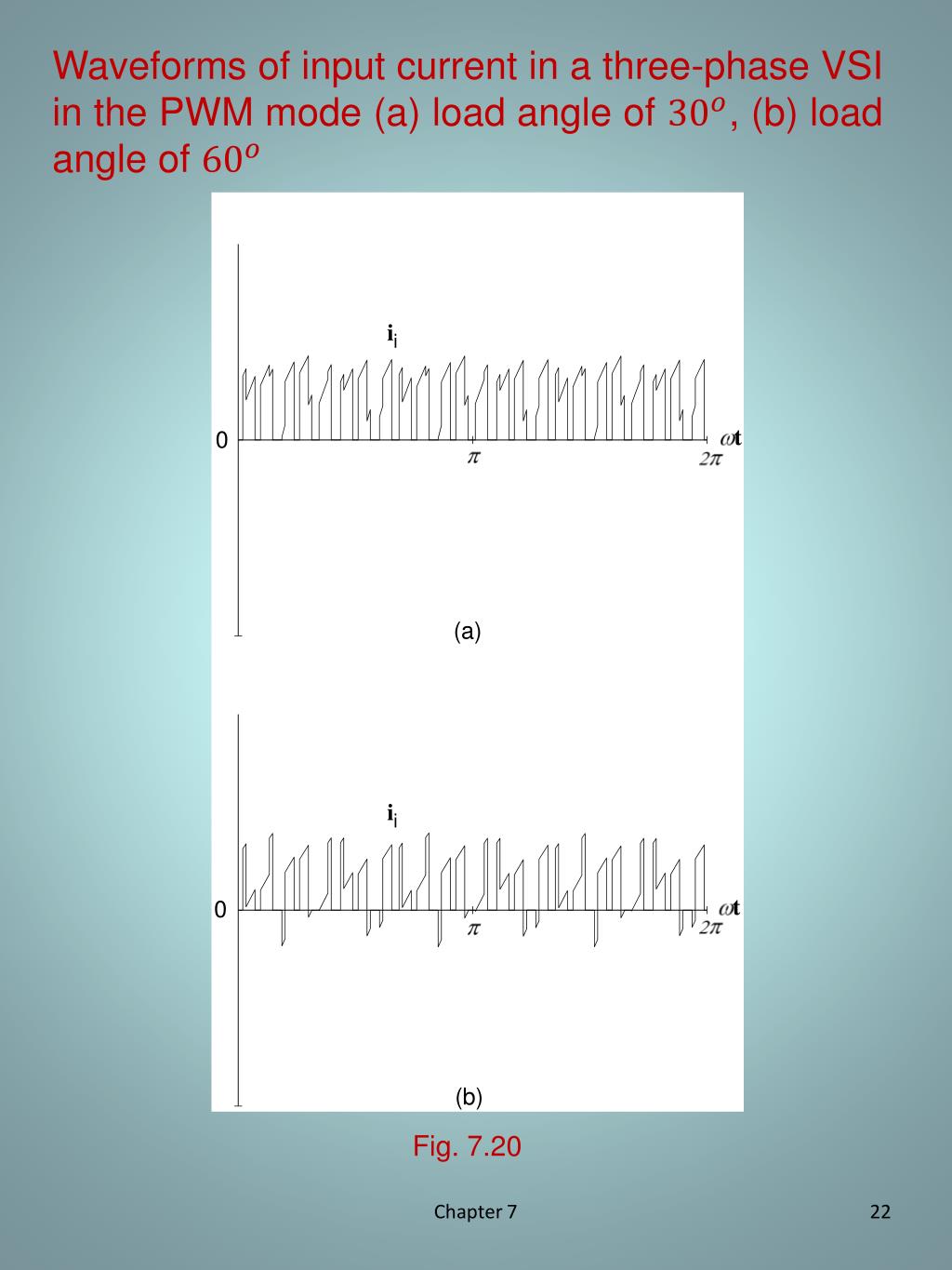 Waveforms of input current in a three-phase VSI in the PWM mode (a) load angle of , (b) load angle of Fig. 7.20 Chapter 7