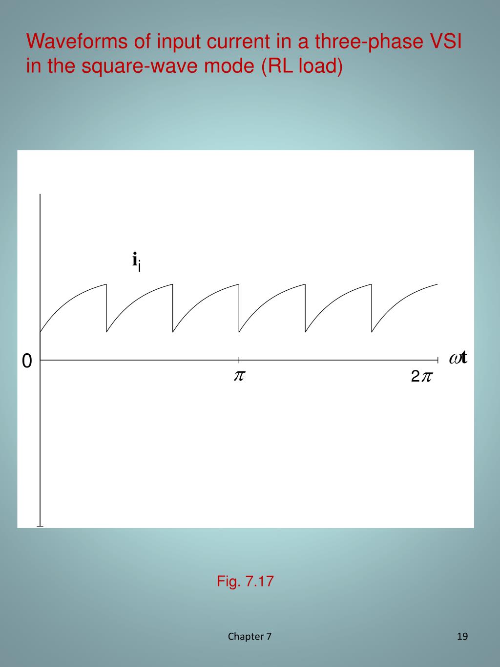 Waveforms of input current in a three-phase VSI in the square-wave mode (RL load) Fig. 7.17 Chapter 7