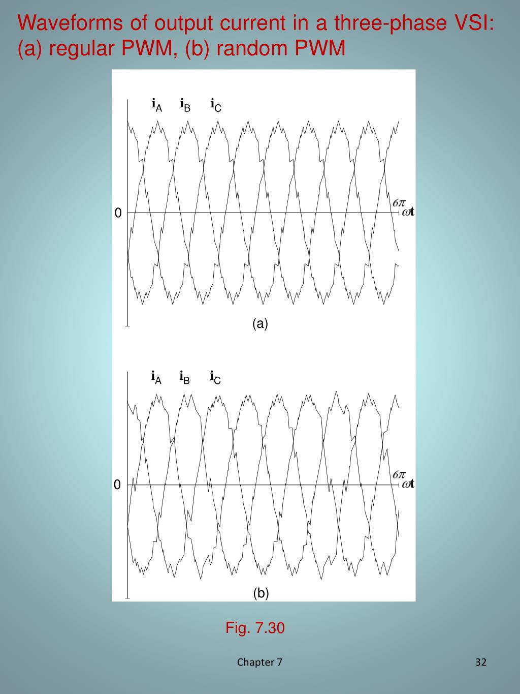 Waveforms of output current in a three-phase VSI: (a) regular PWM, (b) random PWM Fig. 7.30 Chapter 7