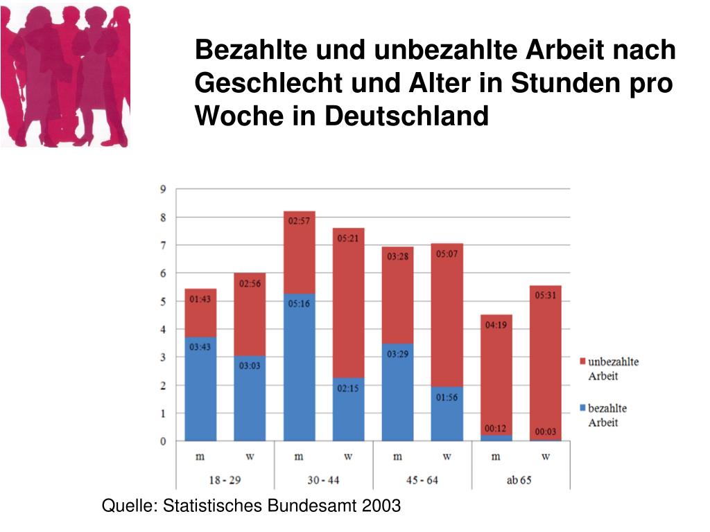 Bezahlte und unbezahlte Arbeit nach Geschlecht und Alter in Stunden pro Woche in Deutschland Quelle: Statistisches Bundesamt 2003
