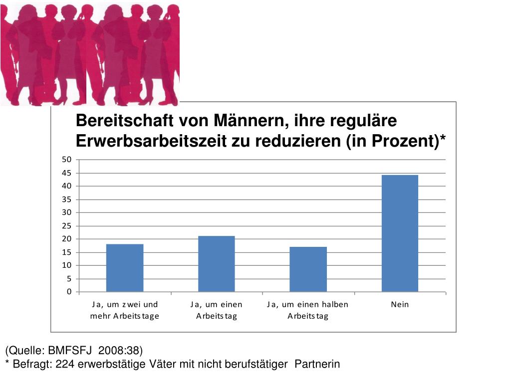 Bereitschaft von Männern, ihre reguläre Erwerbsarbeitszeit zu reduzieren (in Prozent)* (Quelle: BMFSFJ 2008:38) * Befragt: 224 erwerbstätige Väter mit nicht berufstätiger Partnerin