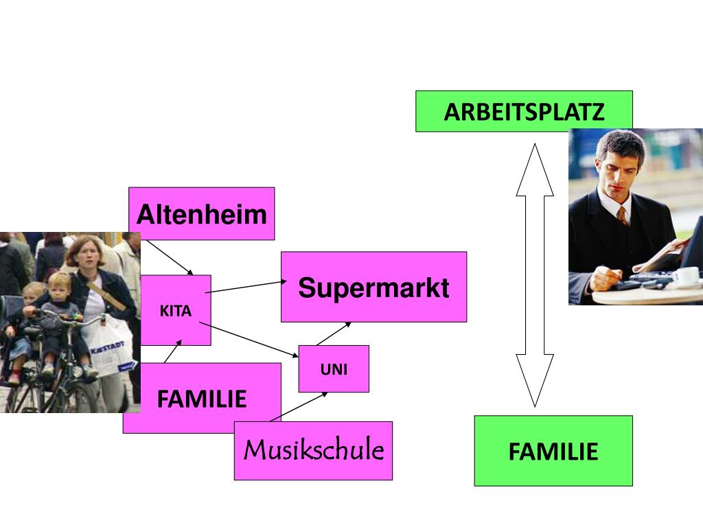 ARBEITSPLATZ Altenheim Supermarkt KITA UNI FAMILIE FAMILIE Musikschule