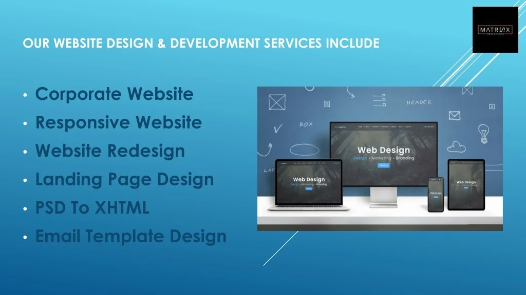 Our Website Design & Development Services include Corporate Website Responsive Website Website Redesign Landing Page Design PSD To XHTML Email Template Design