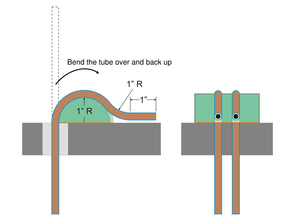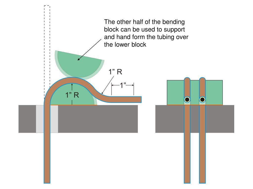 The other half of the bending block can be used to support and hand form the tubing over the lower block