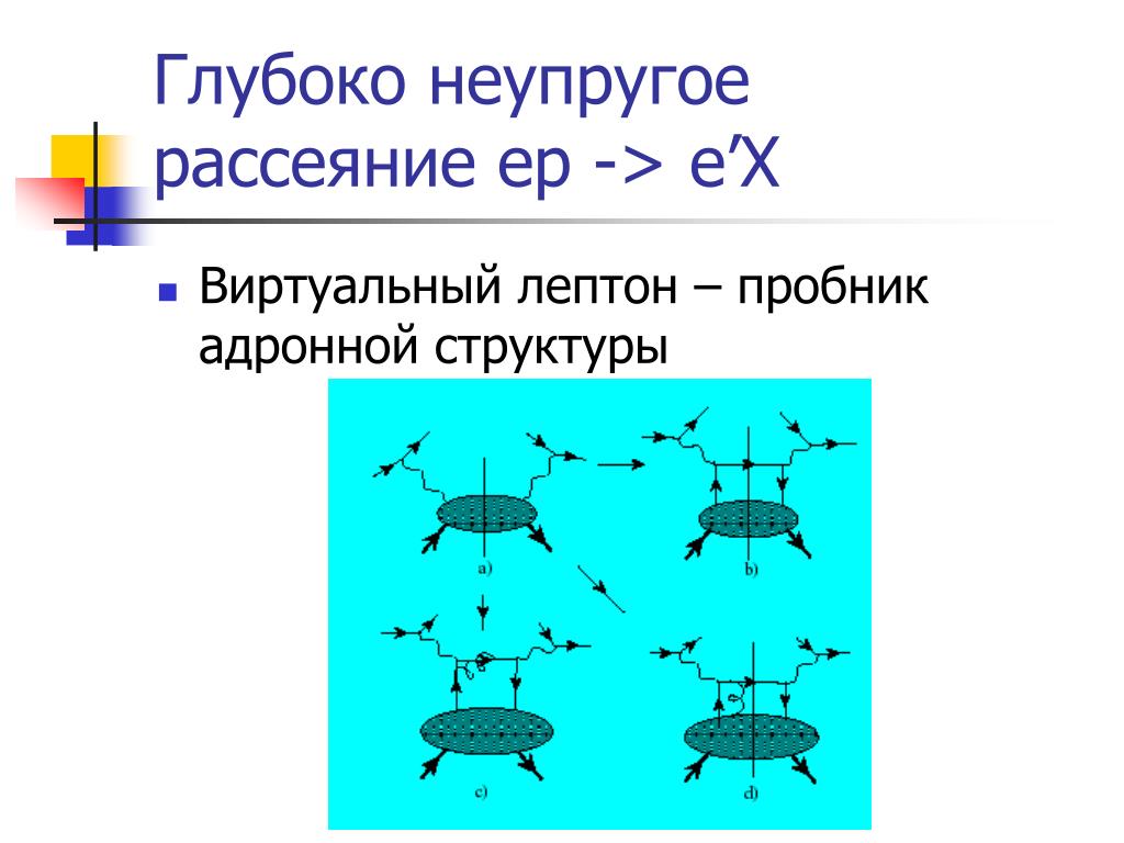 Глубоко неупругое рассеяние ep -> e’X • Виртуальный лептон – пробник адронной структуры