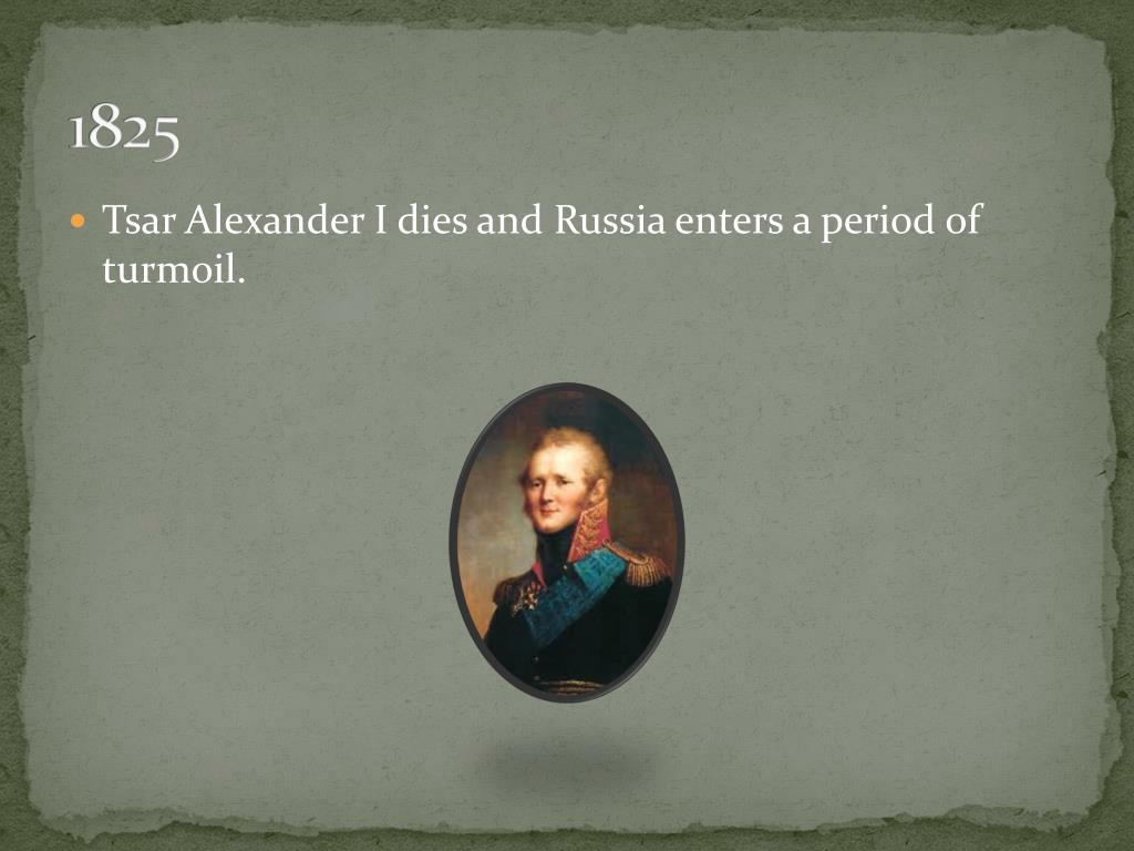 1825 • Tsar Alexander I dies and Russia enters a period of turmoil.