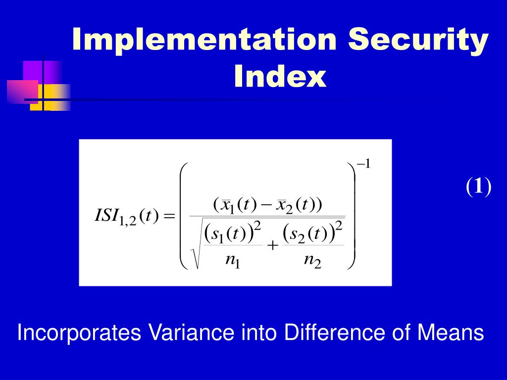 (1) Implementation Security Index Incorporates Variance into Difference of Means