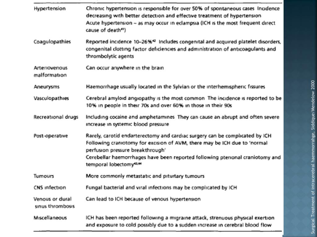 SurgicalTreatment of intracerebralhaemmorrahge, Siddique/Mendelow 2000