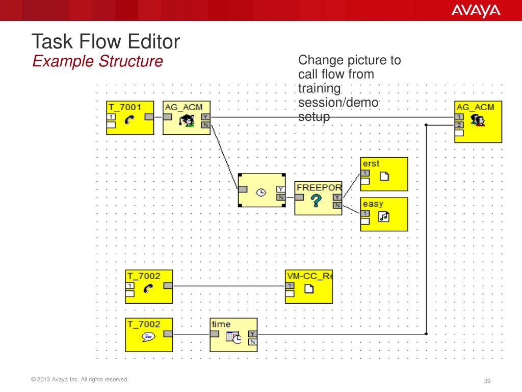 Task Flow EditorExample Structure Change picture to call flow from training session/demo setup